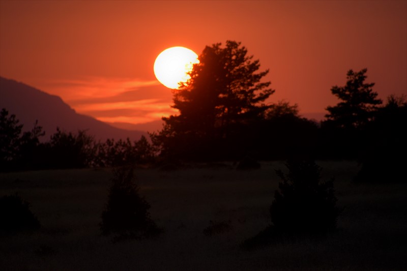 Eguzkia Illonenko mendilerroaren gibletik sartzen / El sol se esconde detrás de la Sierra de Illón